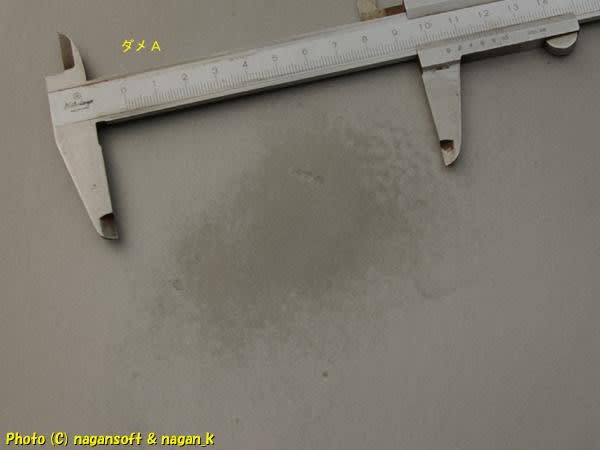 「ダメA」部分は、シンナーに反応してメタリックが泳ぎだした分がメタリック粉目があっち向いているので明確にくすんでいます。ものすごく目立ちます。