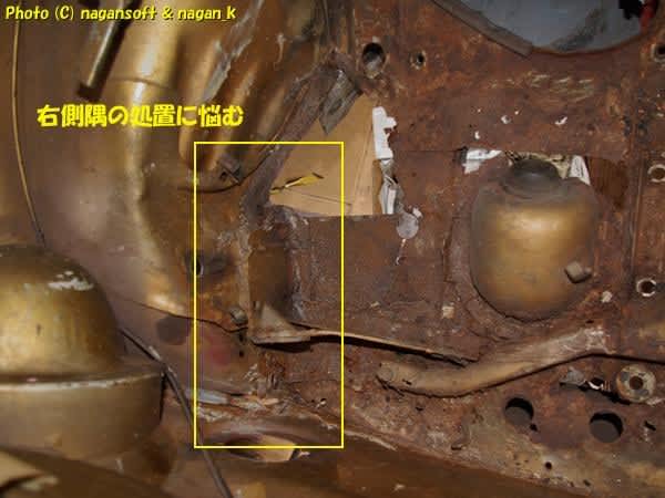 で、この中で強度的に一番信頼できるのが、痴呆親父が溶接した強度出し梁と、ぼろ隠し鉄板なんです。