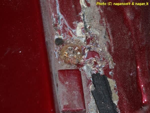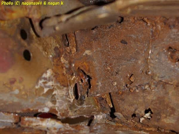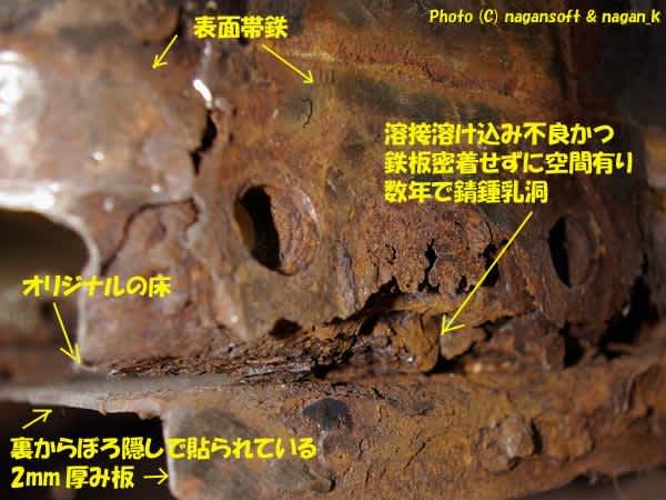 そういった巣を隠すために裏からぼろ隠し鉄板を当てて点付け溶接されているのですが、その鉄板が密着しておらず5mmほどの空間があります。