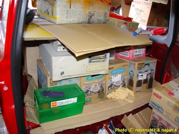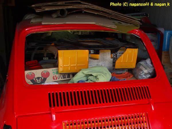 このガラクタをどかすのですが、置き場所がないので一旦クラウンワゴンの室内に積みました。