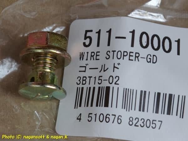 唐沢製作所 ワイヤー止めネジ(サーボブレーキワイヤー式用) という部品で、99円でした。100円しない部品ですよ。
