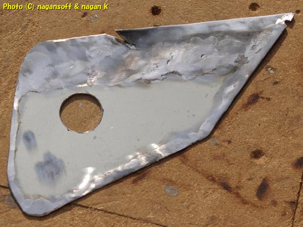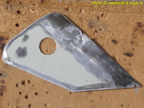 パッチ鉄板の現物あわせデザインができたので、ハンダが付く部分を研磨して鉄肌を露出します。