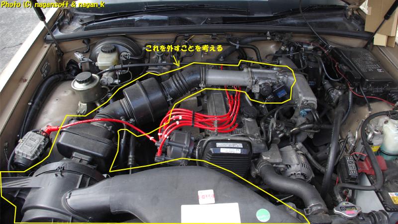 ということで、このホースは抜かないで作業をすることにしました。つまり、エアインテークの一部だけ車体に残します。