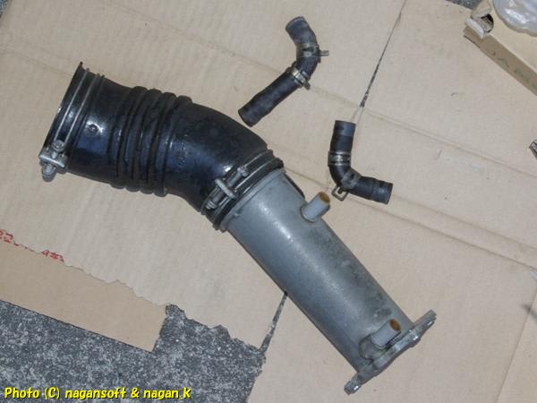 エアインテークの太い蛇腹ホースもかなり危険な感じです。ゴムの弾力がありません。