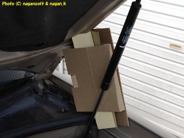 古いからねー、寒いからねー、ボンネットのガスダンパーが力なく、ボンネットを支えることができません。