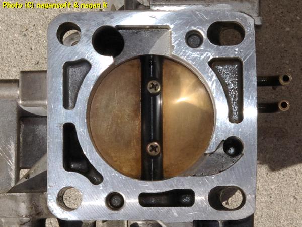 さてさて、インテークを磨いている間に、クーラント液が抜けたので、スロットルボティーを外します。