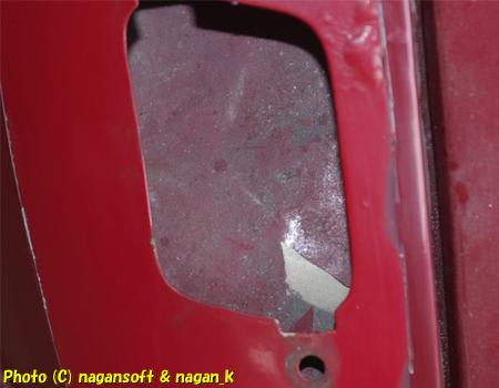 そして、簡単に穴が開きました。もう、この下は鉄素材が欠落していることが確定したので、今はこのまま放置します。