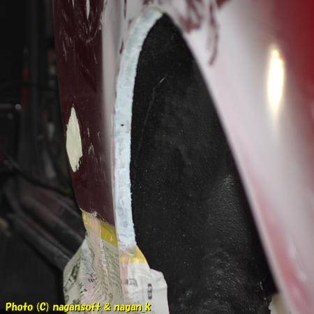 次は、フェンダーアーチ部分に厚付けパテをなすくりました。(この写真はありません。ごめんね)