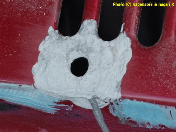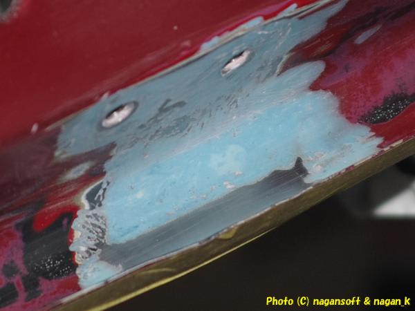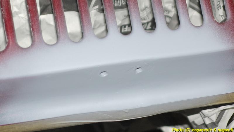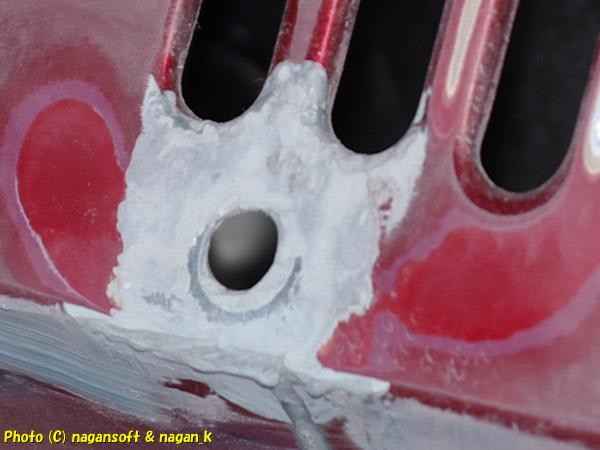 「エンジンフードつっかえ棒受け金具を取り付ける部分」に2回目のパテもり