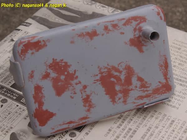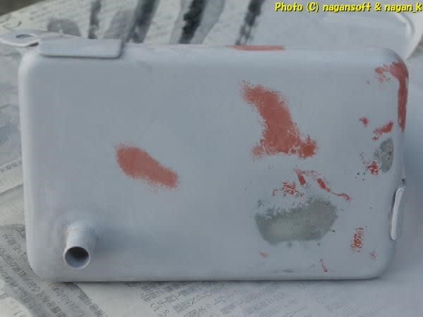 すこしでも紙ホースが裂けるのを防止する目的でPOR-15で張子にしてやろうという考えです。