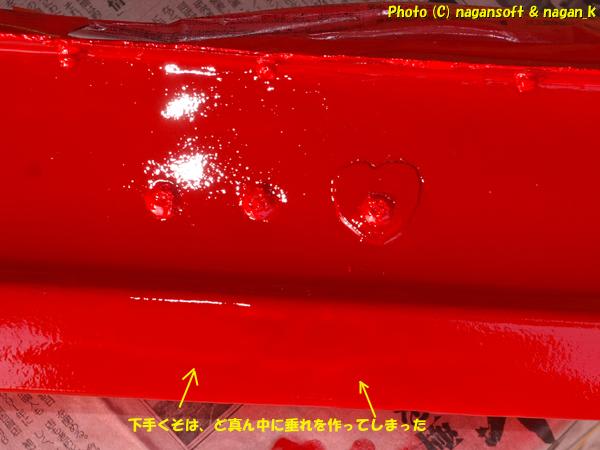 こりゃー大変です。何回も塗るほど塗装垂れの危険がつきまといます。今回もしっかり垂れをつくってしまったし….