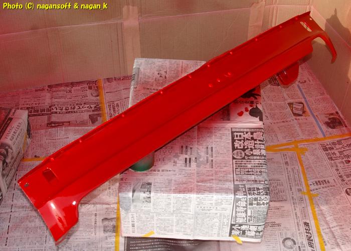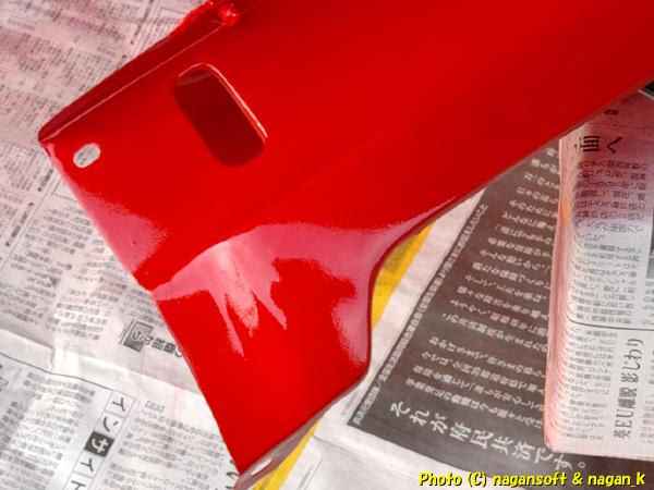 昨日に色を塗りあげたときは、夕暮れまじかだったので色の感じがいまいちだったのです。それでも消防車レッドだろうと喜んでいたのです。