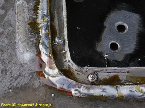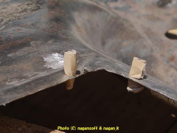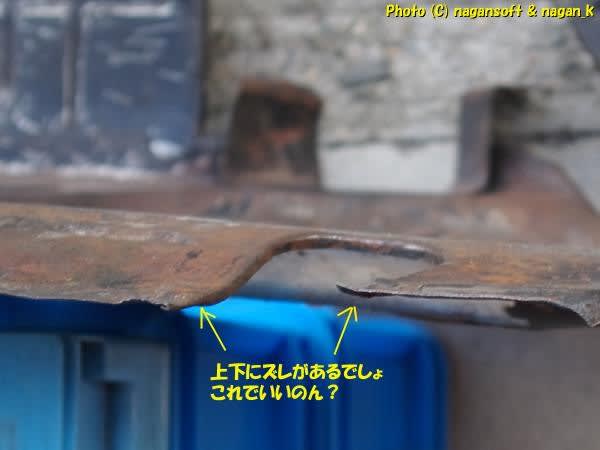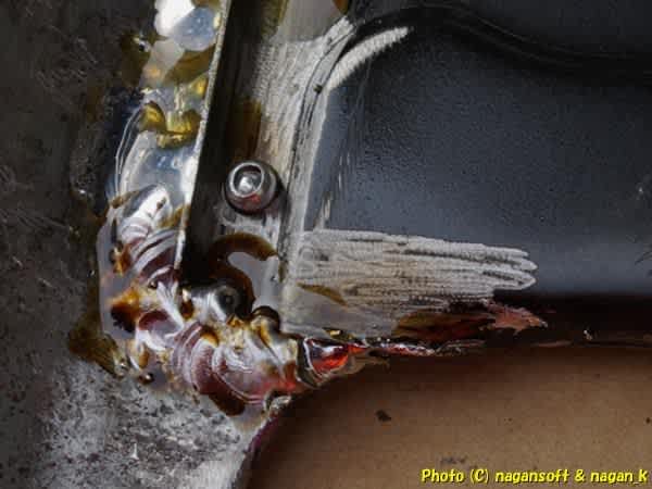 こちらの面から水が侵入して合わせ鉄板を腐らせてました。ついては水が隙間に絶対に入らないようにしないといけません。