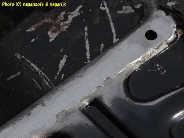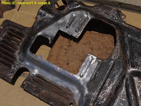 いよいよエンジンアンダーカバーの錆欠損部位を切除しますよ。