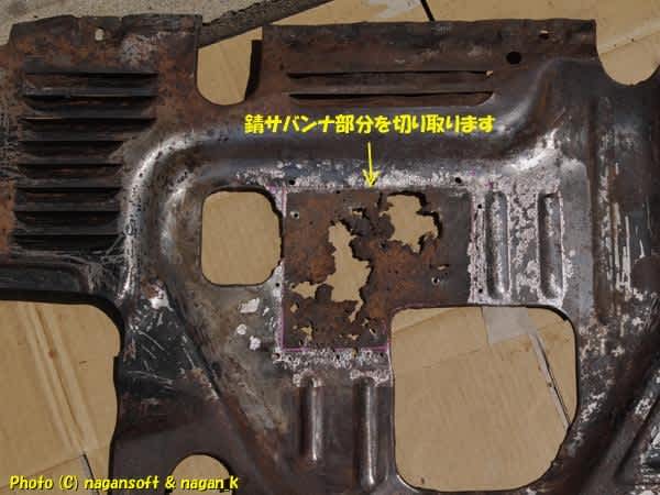 ジグソーで切り出すことも考えましたが錆欠損大穴が切り取りラインのすぐそばだから鋸刃の振動で大暴れしそうだし…