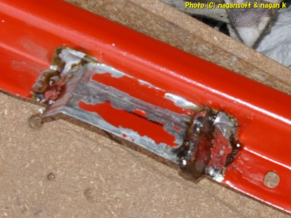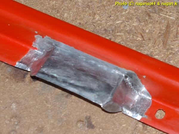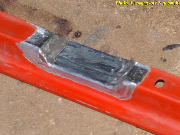 折り曲げた部分にちょっと切り込みを入れて斜めに曲げて、小さいパッチ鉄板を切り出してハンダで貼り付けてというのをじっくりと作業しました。