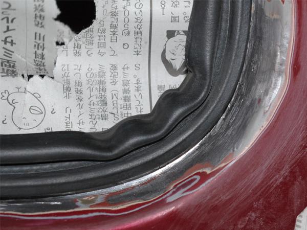 クオーターガラスはめ合い部には、こんな断面のウェザーストリップゴムがボンド貼り付けされてました。
