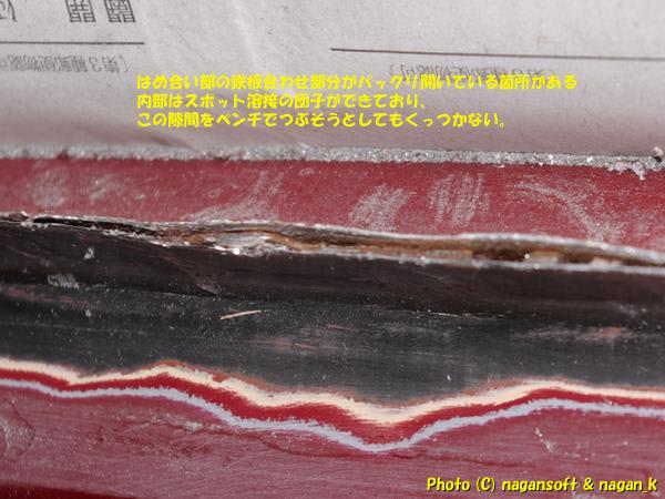 ともかく、私が確認したときはすでに錆びが塗装の表面に出てまして、その錆を追及したら合わせ面がパックリ開いて中に錆が進行していたのです。
