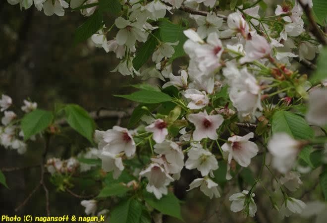 大きい山ザクラは終わってます。2週間前はピンクだったものが、うっそうとした緑色になってました。