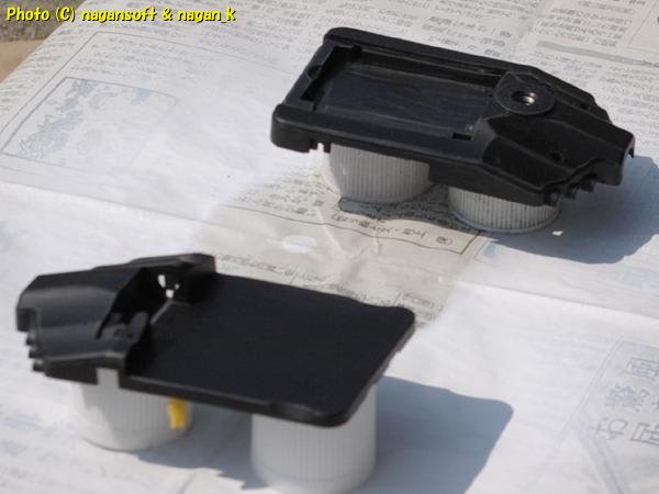 内側にマスキング処置をしなかったので塗料が回り込んで汚れてますが、そんなことは気にしないことにします。