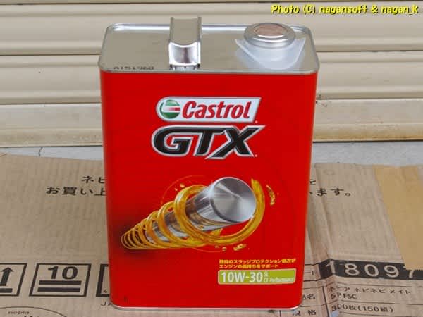 今回入れるオイルは、いつものカストロールGTX です。4リッター缶1000円のやつね。