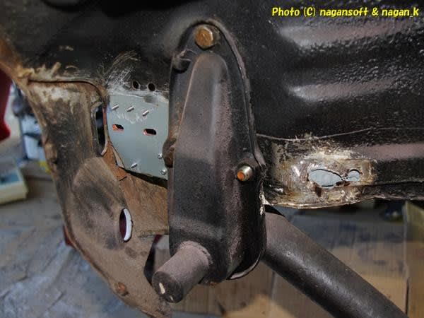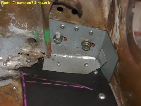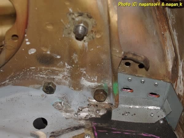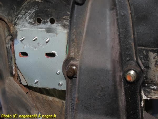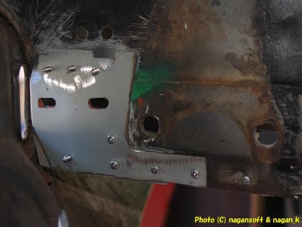 左バンパー固定ボルト通し穴対策修理にて新規鉄板を差し込みました。