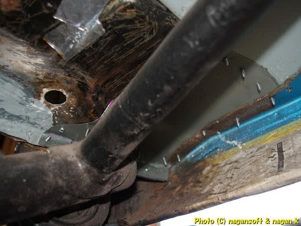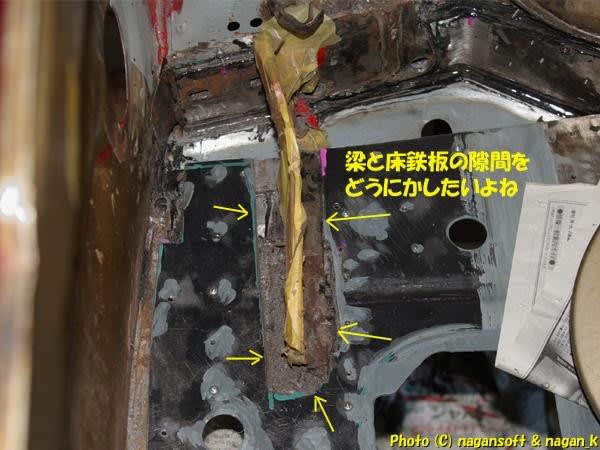 右側の「痴呆親父が構築している梁」と「トランク床」の隙間部分です。