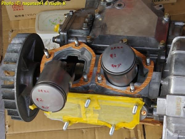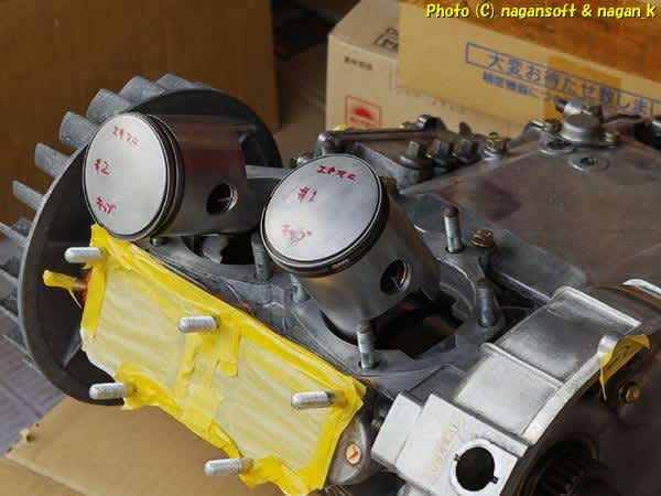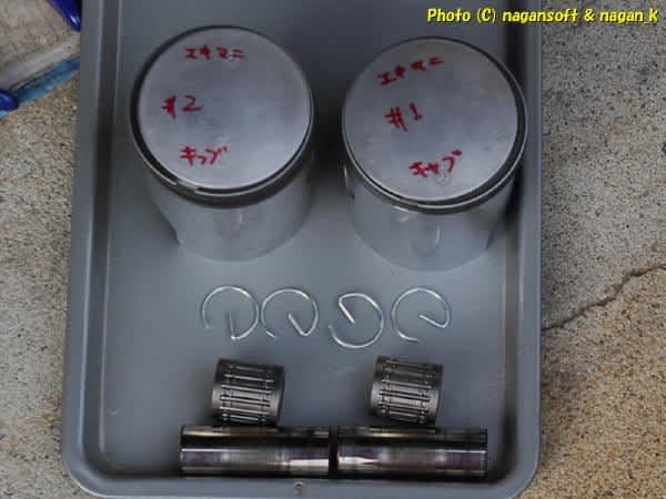 ピストンです。左の2番は私の車体のやつ、右の1番は某方から分けてもらったピストンです。ちなみに私の車体のやつは1番棚落ちだったのよ。