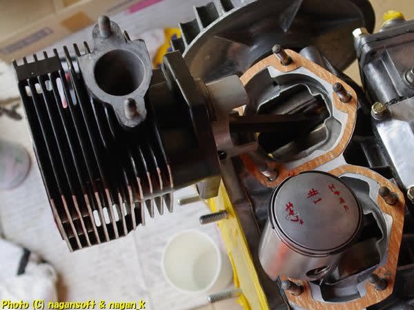 シリンダーをそーっと沈めてクランクケースとドッキング