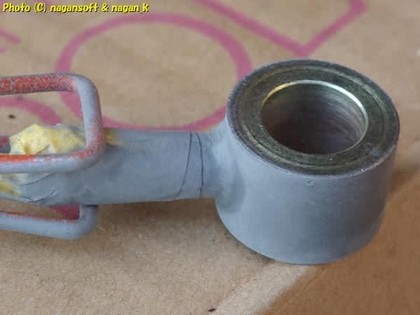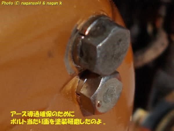 せっかくウンコ色に塗装したのに、アース導通確保のためにボルト当り部分の塗膜を削りました。
