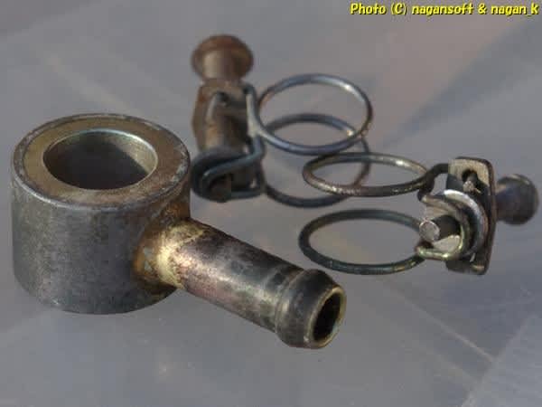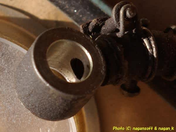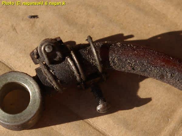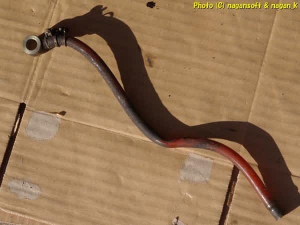 バンジョーをほーすから抜き取りまして、掃除してみましたらバンジョー表面が塗装されていたのを発見。塗装が割れて錆が発生してます。