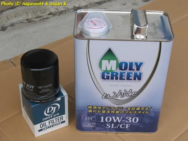 用意したのは4リッター缶が1000円でお釣りがくる、パルスター株式会社の「モリグリーンホワイト」10W-30
