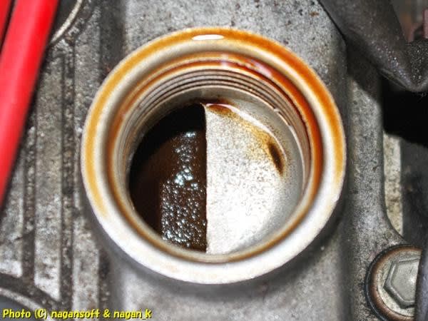 もしオイル滲みが始まったらオイル漏れ対策添加剤を後日に追加投入することを考えて….