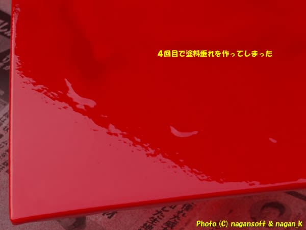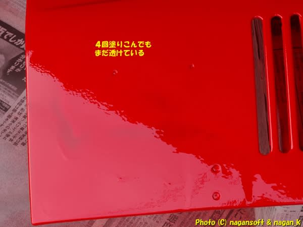 4回目でも、まだまだ下地が透けてます。どれだけ赤色って透け色なのよ。