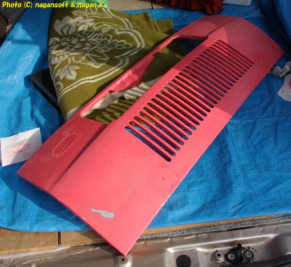 燃料給油口カバーの表面を塗装しました。その塗装のインターバルでリヤエンジンフードの研磨という段取りです。