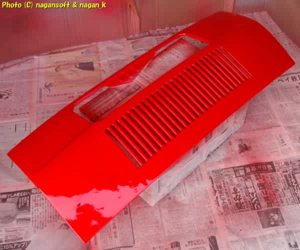 さて、リヤエンジンフードは塗装垂れを研磨してこの状態へ。