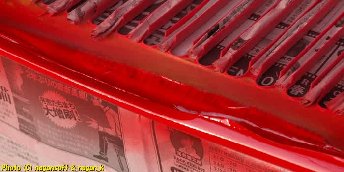 どうせ研ぐのなら、めっちゃ分厚く金赤色を乗せてやる。