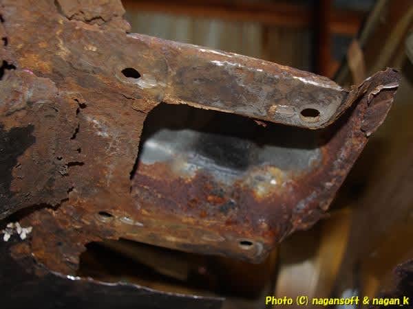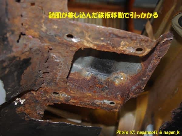 中央梁の裏が錆クズです。この錆表面がガサガサ突起があり鉄板をずらすときに引っかかるのよね。