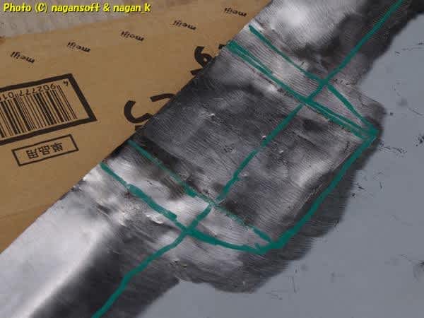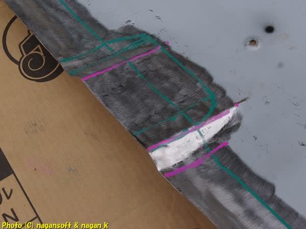 本当はもっと輪郭を突き詰めたいのですが、こっちを叩くとあっちが浮き上がるというパターンになりました。つまり下手糞板金では終わりの無いパターンになったんです。