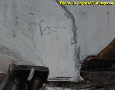 隙間にジンクスプレーを吹きこんで、錆び止め塗料(エポローバル)を刷毛塗りしました。