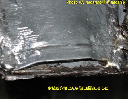 昨日に計画したように、水抜き穴として下の方をあえて開けておきました。