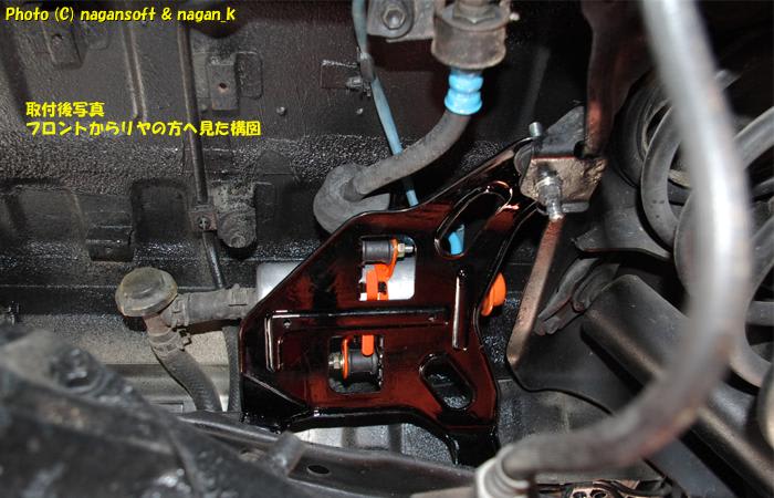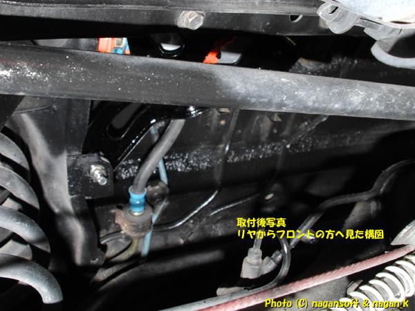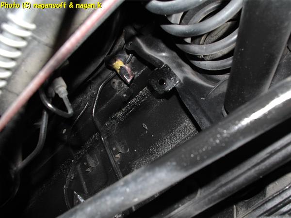 ポンプ固定ブラケットはボルト2本とナット1個で車体に固定されてます。