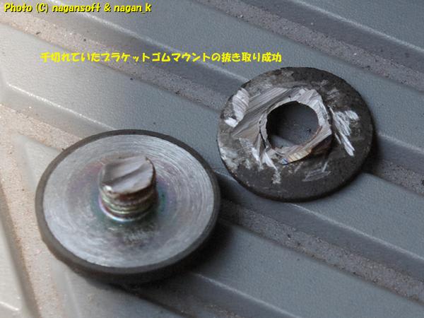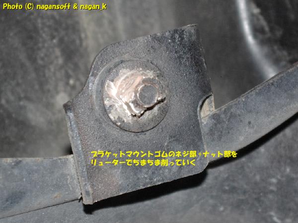 制振ブッシュのナットを幾ら回したところで供回りして外れません。なので制振ブッシュのネジナットが残りました。