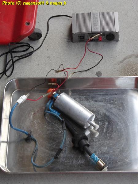 次に、交換する中古の燃料ポンプの通電確認です。まだ通電テストはしていなかったのよね。