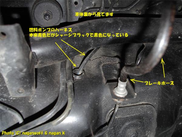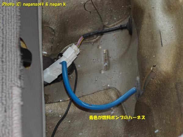 青色のケーブルが燃料ポンプから伸びているハーネスです。