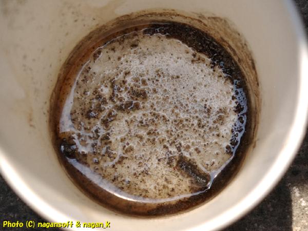 紙コップに溜まった汚れ水を5分ほど放置して上澄みを捨てました。残留物は…