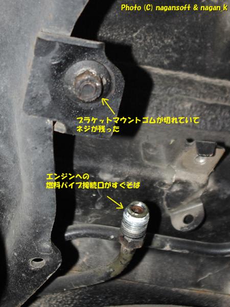 なんと、燃料ポンプブラケットに取り付けられている制振ブッシュが経年劣化で千切れていたのです。
