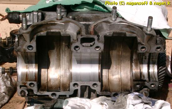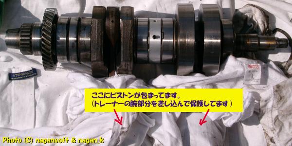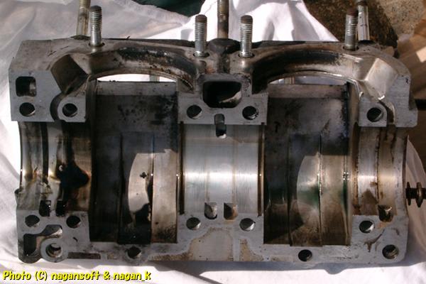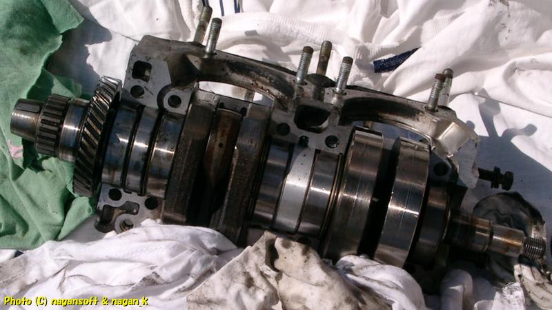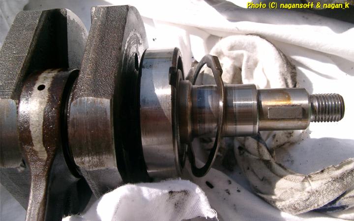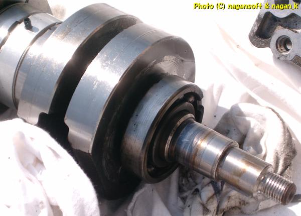 クランククシャフトをくるくる回したり、個々のベアリングを回したりしたところ、特に変な抵抗やブレはなさそうです。
