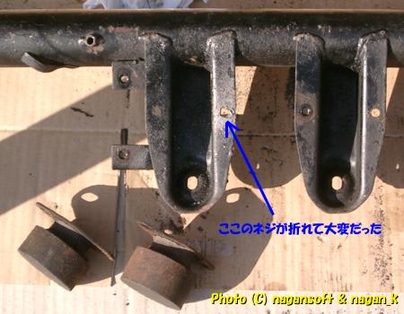 クロスメンバー(エンジンが乗っかっているフレーム)のネジを一か所ねじ切ってしまいまして、その対策で苦戦したのです。