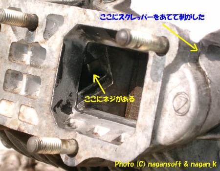 シフトロッドを抜いて、オイルシールを剥ぎ取りました。シフトロッドは仮止めでまた元に戻しておきます。